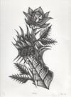 Doug fir cone linocut